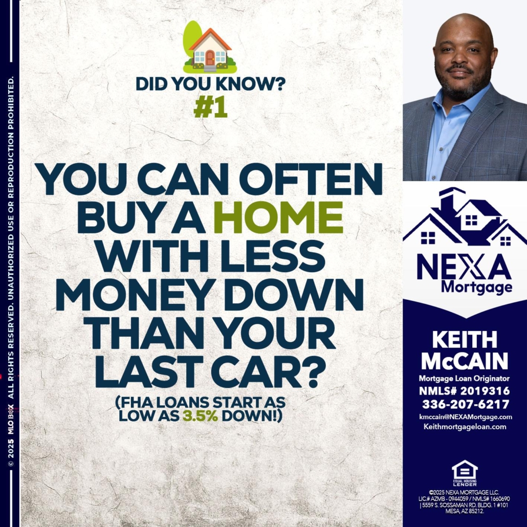 DID YOU KNOW #1 - Keith Mccain -Mortgage Loan OriginatorHi, my name is Keith lee McCain. I’m a Loan Officer with NEXA Mortgage LLC., offering personalized mortgage solutions, fast customized quotes, great rates and service with integrity.
