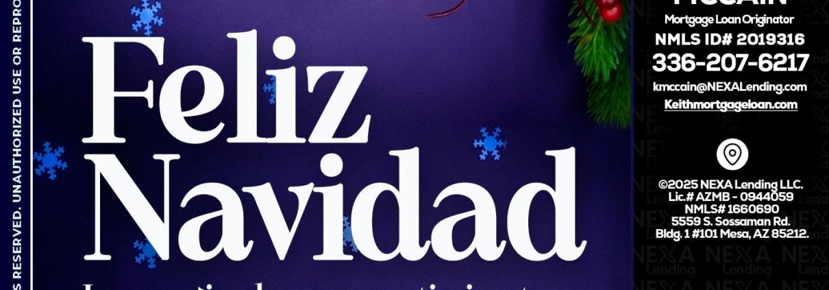 FELIZ NAVIDAD - Keith Mccain -Mortgage Loan OriginatorHi, my name is Keith lee McCain. I’m a Loan Officer with NEXA Lending LLC., offering personalized mortgage solutions, fast customized quotes, great rates and service with integrity.